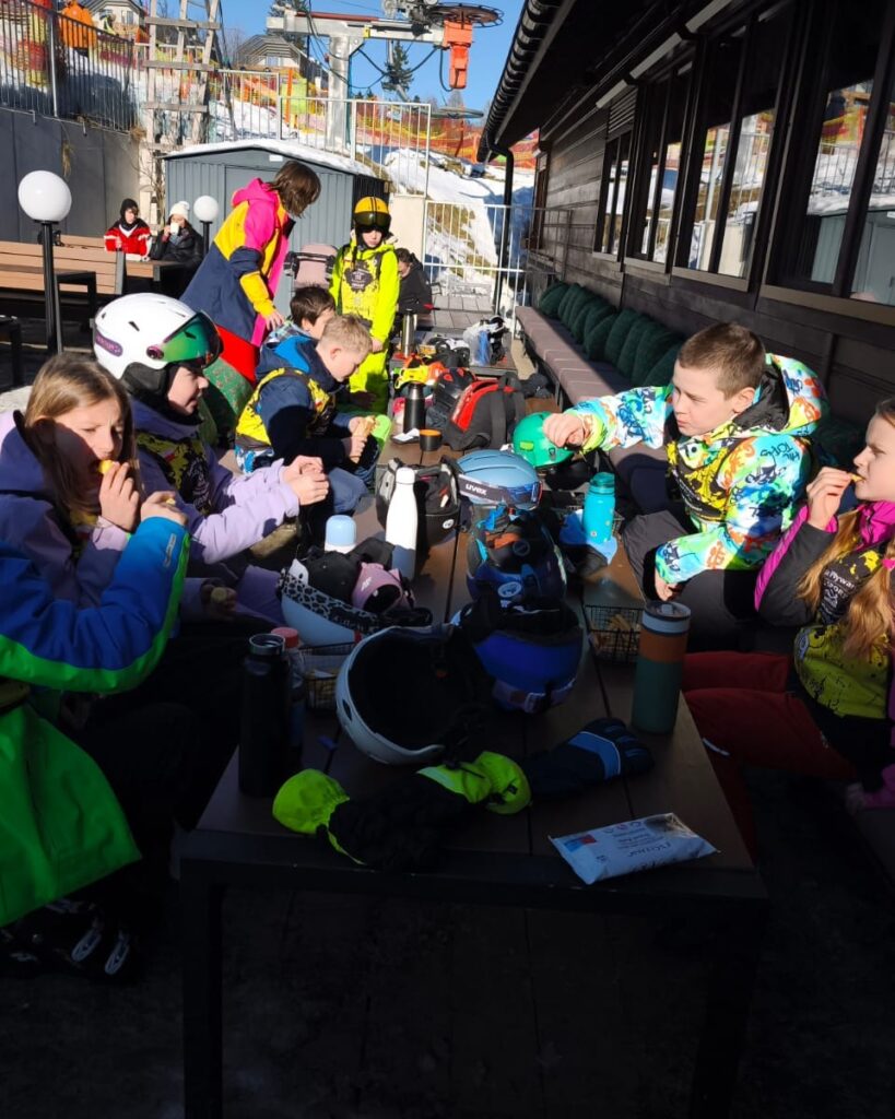 Młodsi uczestnicy stawiali swoje pierwsze kroki na nartach, szybko zdobywając nowe umiejętności . Starsi uczniowie doskonalili technikę jazdy w doskonałych humorach, czerpiąc radość z zimowego szaleństwa. Nie zabrakło również chwili na relaks oraz pyszną, gorącą czekoladę .